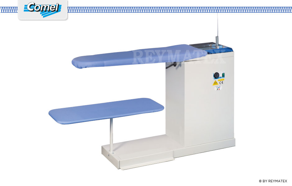Mesa de aspiración universal, industrial con motor de mayor potencia de 0,55 Kw y calentado del plato (380V Trifásico). Medidas del plato: 117×25-37 cm. No incluye plancha de mano.