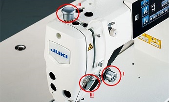 • III. Abrazadera del hilo de la aguja: funciona para reducir el tamaño del hilo que se enreda en el lado equivocado del material.