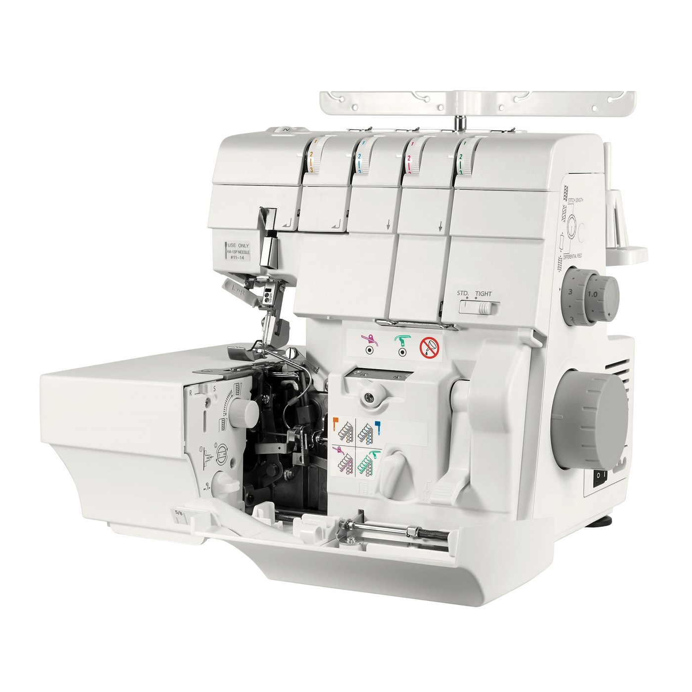 - Programas de puntada: para 4 hilos (puntada de seguridad, puntada de seguridad elástica, sobrehilado decorativo y fruncido), para 3 hilos (sobrehilado normal, ancho, cordoncillo estrecho y cordoncillo enrollado, borde picot, puntada plana y jaretas) y para 2 hilos (puntada plana, y cordón enrollable)