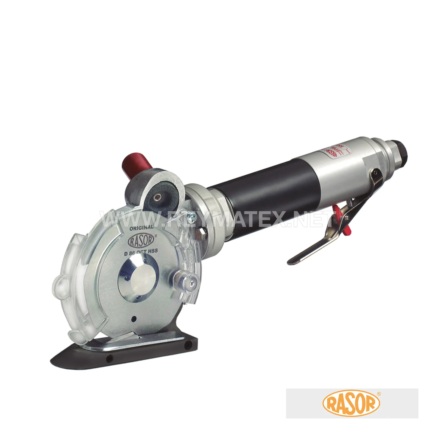RASOR de corte circular neumática con cuchilla de canto de 86 mm y contracuchilla, corte útil 20 mm.