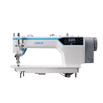 Máquina doble punta arrastre por pata y diente para tejidos medios y gruesos, equipada con cortahílos, alzaprensatelas, regulación de longitud de electrónica, remates electrónicos, luz LED integrada y motor Direct Drive.